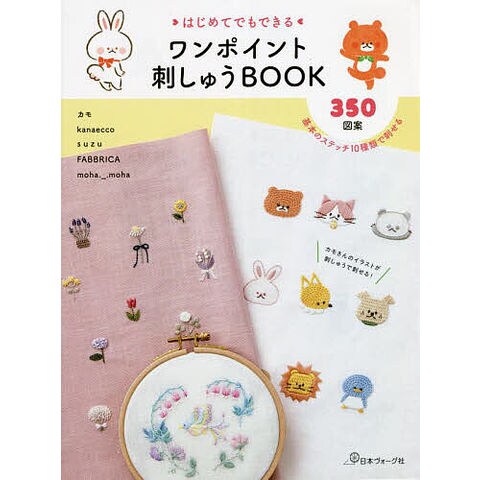全くの初心者でも始められるよう、イラストと写真で基本から丁寧に解説しています。ワンポイントの図案約350点を掲載。基本的な10種類のステッチで刺すことが出来ます。人気イラストレーターのカモさん(Instagram10.6万人)の挿絵と図案を中心に、人気刺しゅう作家kanaecco、SUZU、FABBRICA、moha._.moha(合計フォロワー21.7万人)のオリジナル図案を植物・動物・食べ物・線画・文字などカテゴリーに分けて収録。簡単な巾着やポーチなど小物の作り方も掲載。入園入学にも使えるような図案+レッスンバッグの作り方も掲載しています。