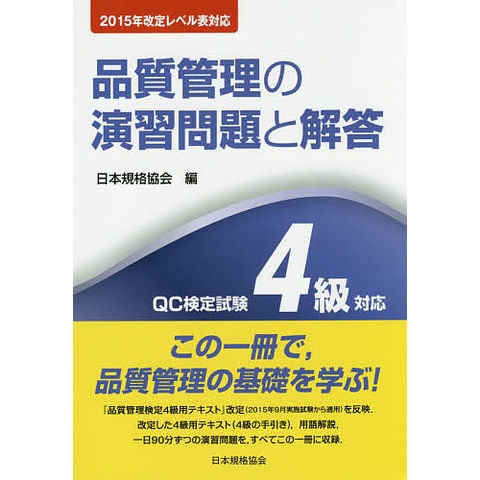 『品質管理検定4級用テキスト』改定(2015年9月実施試験から適用)を反映。改定した4級用テキスト(4級の手引き)、用語解説、一日90分ずつの演習問題を、すべてこの一冊に収録。
