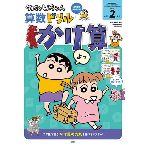クレヨンしんちゃんがついに学習ドリルに登場! 要所要所に楽しいマンガを散りばめ、各問題もクレヨンしんちゃんの世界観そのまま。子供が飽きることなく勉強を続けることができる内容となっている。本書では小学2年生で習う「かけ算の九九」をしんちゃんたちと一緒にマスターする。学習の進捗度合いをチェックできる「ぶりぶりシール」付き。
