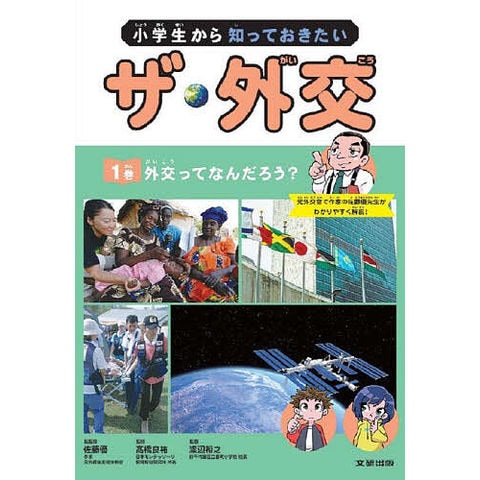 「小学生から知っておきたい ザ・外交」シリーズは、外交の意味や役割、外交を行う組織と人、外交のルール、外交で活躍した人々などを、導入マンガや佐藤優先生のキャラクターを通じて、豊富な資料やデータと写真を掲載して分かりやすく解説しています。第1巻では、外交で使われる用語(領空・領土・領海、国際法、大使館など)や国に関する説明、国際協力や文化交流活動について扱っています。巻末には監修者からの外交に関する「おすすめの本」を紹介しています。