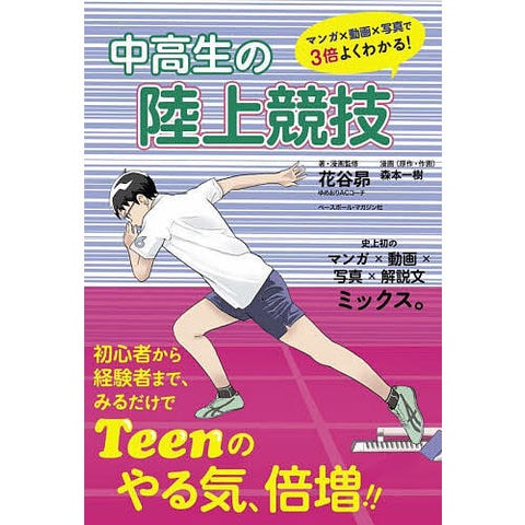 この書籍の構成 本書1~3章に関しては、各テーマについて「陸上競技に取り組まれるみなさんが陥りやすい失敗をまずはマンガで表現し、続いて、その解決法を写真と文章によって解説する」かたちとなっています。また、最終章(第4章)においては、経験を積まれた方に向けて細かなポイント(ディテール)をレクチャーしています。さらに、各章の写真と文章による解説のページにおいて、映像で視た方が理解を深めやすいと思われる項目に関してはQRコードを添え、動画にて動作を確認できるようにしています。
