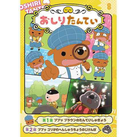 アニメオリジナルストーリーを収録した、おしりたんていアニメコミックシリーズ第8弾は、「ププッ ブラウンのたんていしゅぎょう」と「ププッ ゴリかわへんしゅうちょうのじけんぼ」の2話収録です。