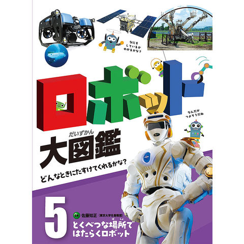 5巻では、月面探査用ロボットや山岳トンネル施工用の巨大ロボットなど、特殊な用途を目的として開発されたロボットを紹介します。さらに、図鑑の内容を整理できるシートも掲載。