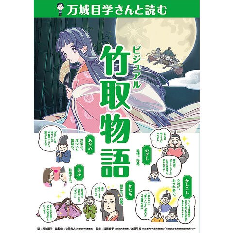 『竹取物語』から厳選された12シーンの「原文」と「直訳」、直木賞受賞作家・万城目学さんによる書き下ろしの「現代語訳」を掲載。物語を理解するために必要となる、古語や歴史背景に関するビジュアル解説も充実しています。そのほか絵巻物や屏風絵など、歴史的な画像資料も盛り沢山。子どもから大人まで幅広く楽しめる、古典の入門書として最適なシリーズです。