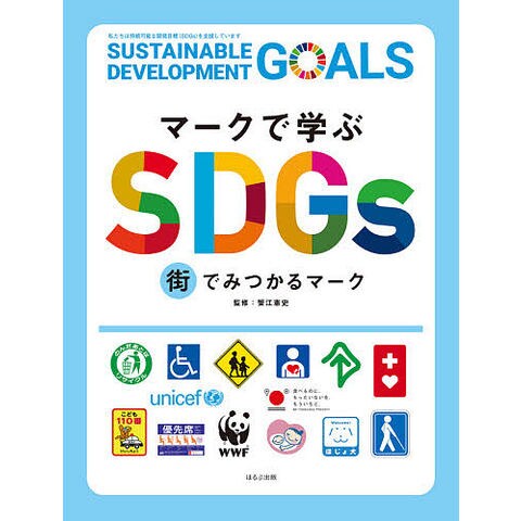 SDGsには17の目標がありますが、範囲が多岐にわたるため、なかなか具体的に理解することが難しいところがあります。この本では、身近なところで見かけるさまざまなマークを見開きで紹介し、それがSDGsのどの目標とリンクしているかを解説。身近なことからSDGsを学ぶことができるシリーズです。この巻では、街でみつけられるマークとして、「ユニセフのロゴマーク」「ほじょ犬マーク」「ヘルプマーク」などを紹介。