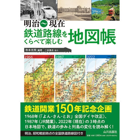 2022(令和4)年、新橋・横浜間で開業した日本の鉄道は、150年という節目を迎える(10月14日)。そこで、老舗の地図専門出版社である二宮書店が制作した学校用地図帳を活用して、明治の鉄道開業から現在のJR全盛期までの、国鉄・JRの鉄道路線を中心とした変遷を紹介する。地図帳で鉄道路線を追いかけながら、解説や写真とともに、鉄道路線がどう移り変わっていったかをくらべて楽しむ。