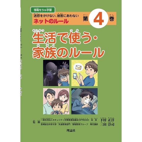 ネットの利便性と危険性を認識して、正しく、安全に利用するための基礎を学ぶシリーズです。第4巻ではスマホなどの機器は保護者から借りているものという認識をもたせ、言えないことには使わない、すぐに相談すべきことを説明しています。