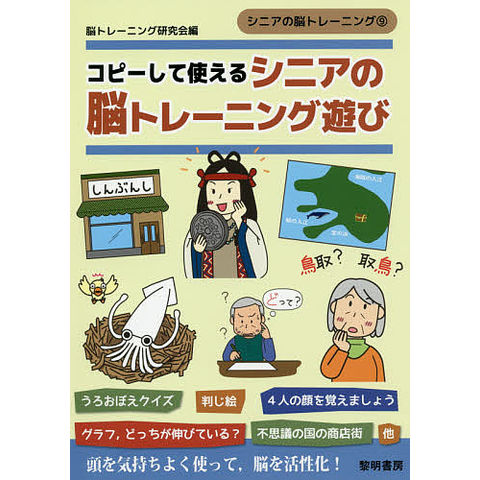 シニアのためのバラエティに富んだ楽しいクイズやパズル、遊びを数多く収録しました。とっさの判断をする力をつちかう「電気をつけよう」、計算力を高める「スーパーの大売出し」、記憶力の向上を図る「裏表記憶力遊び 宝島編」など、毎日飽きずにできます。