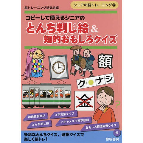 神経衰弱遊び、ハチャメチャ四字熟語、おもしろ都道府県クイズ、他、おなじみの判じ絵やクロスワードパズルをはじめ、バラエティ豊かなとんちクイズを多数収録。選択問題も充実した、より気軽に楽しめる脳トレブック。