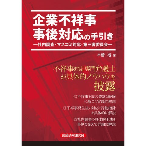 企業不祥事事後対応の手引き 社内調査・マスコミ対応・第三者委員会/木曽裕