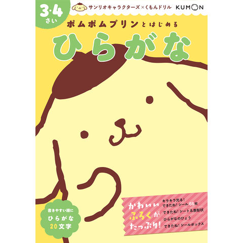 ポムポムプリンと仲間たちがページいっぱいに登場して学習を応援してくれる、ひらがなに興味をもちはじめた3・4歳のお子様にぴったりのドリル。
