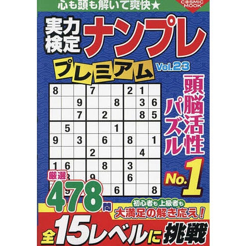 お手軽サイズでたっぷり478問収録のナンプレ誌!15段階の難易度とヒント「ここに注目!」で、初心者から上級者まで楽しめます。
