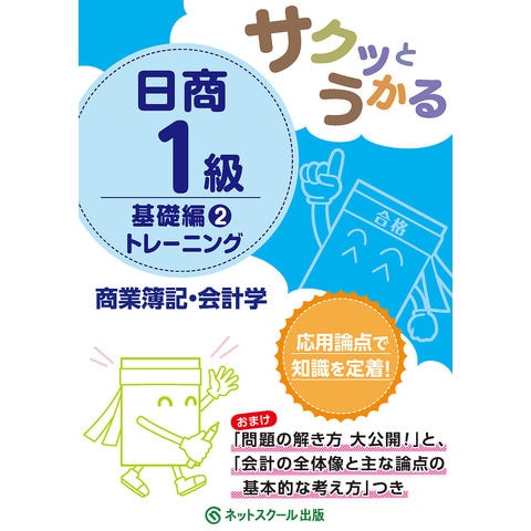 特に本書(基礎編2)では、『基礎編1』で身につけた知識を更にプラスして学習すべき論点を中心に掲載しており、『サクッとうかる日商1級商業簿記・会計学基礎編2テキスト』と合わせて学習していただくことで、商業簿記・会計学分野において合格に必要な基礎知識を固めることが可能です。