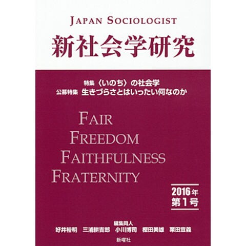 社会学の知的営為の更なる発展を目指し新たな学術雑誌が誕生しました。代表的な学術雑誌(『社会学評論』等)の編集委員を経験した練熟の社会学者が編者となり、文化、ジェンダー、親密圏、教育、エスニシティ、宗教、法律、政治、経済と現代日本の各所に潜む矛盾と課題を解決する力をもった社会学の知を求めて、毎号を編みあげます。創刊号では特集テーマとして「〈いのち〉の社会学」、公募テーマとして「生きづらさとはいったい何なのかを設定し、六篇の力作研究と、編者による映画・ファッション・査読・ビデオ調査等の論考を集めました。社会学の新たな〈場〉を目指した挑戦にご期待ください。