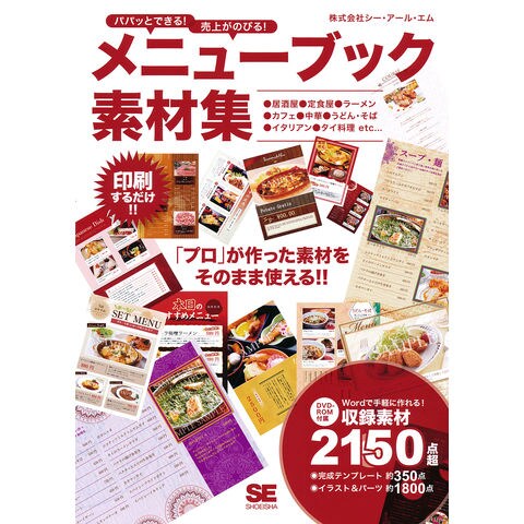 本書は、メニューブックのテンプレート&素材集です。多くの飲食店は、定期的にメニューブックの見直しやリニューアルを行なっています。一方で、定期的な見直しが必要なぶん、作成にかかるコストや手間を負担に感じる飲食店主は少なくありません。そこで本書では、印刷するだけで使えるWord形式のメニューブックテンプレートを多数DVDに収録しました。「居酒屋」「カフェ」「うどん・そば」「ラーメン」など、業種別に準備しているので、あらゆる飲食店で役立ちます。また、アイコンやイラストなどのパーツ素材も多数準備してますので、パーツを組み合わせれば、世界で1冊だけのメニューブックが簡単に出来上がります。収録素材は2150点以上。しかも、素材は全て普段メニューブックの作成を手掛ける「プロ」が作ったものなので、クオリティも抜群です!