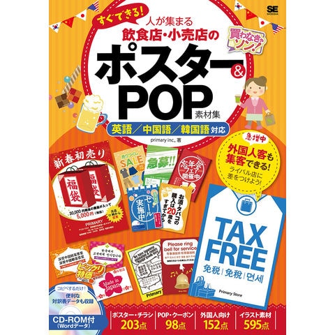 すぐできる!人が集まる飲食店・小売店のポスター&POP素材集 英語/中国語/韓国語対応/primaryinc.,