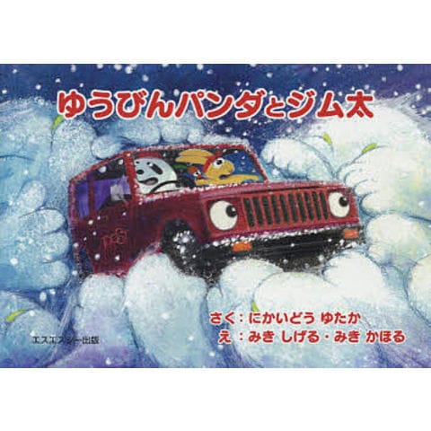 この『ゆうびんパンダとジム太』は、2013年に発売した『ドクトルパンダとジム太』のシリーズ第二弾です。主人公のジム太が郵便屋さんで活躍する物語です。大雪の中、誰も行けない山中の家に、小包を届けるジム太の姿は物語を読む子どもたちに勇気を与えます。英文併記で、大人にとっても読み応えがあり、ジムニー愛好家なら一冊は持っていたい絵本。自動車愛好家への贈り物としても最適の一冊です。