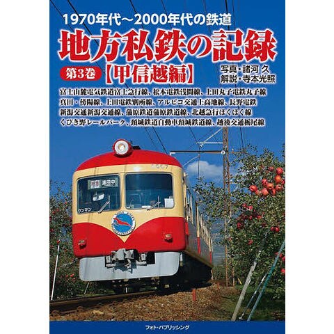 日本の鉄道写真の第一人者である諸河久氏が撮った地方私鉄の新シリーズ。1970年代の末から2000年代初頭にかけて全国を旅してコダクロームで撮った美しい写真の数々を堪能できます。掲載写真の大半が初出の写真です。今回はシリーズ3巻目の「甲信越編」として、人気の富士山麓電気鉄道富士急行線、松本電鉄浅間線、上田丸子電鉄丸子線、真田・傍陽線、上田電鉄別所線、アルピコ交通上高地線、長野電鉄、新潟交通新潟交通線、蒲原鉄道蒲原鉄道線、北越急行ほくほく線、くびき野レールパーク、頚城鉄道自動車頚城鉄道線、越後交通栃尾線を掲載します。
