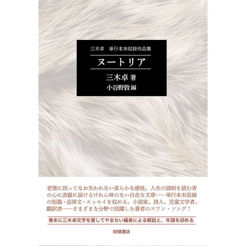 昨年11月、惜しまれつつ逝った著者の、最後に遺された単行本未収録の短篇小説、追悼文、鎌倉の文芸誌「そして」に連載されていたエッセイを収める。巻末に三木卓文学を愛してやまない編者・小谷野敦氏の解説と年譜を収める。
