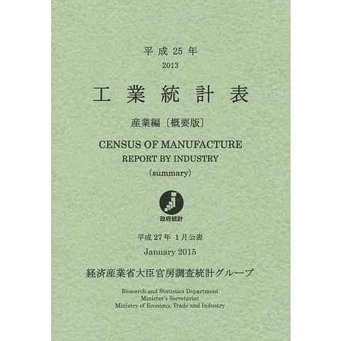 工業統計表 産業編〈概要版〉 平成25年/経済産業省大臣官房調査統計グループ