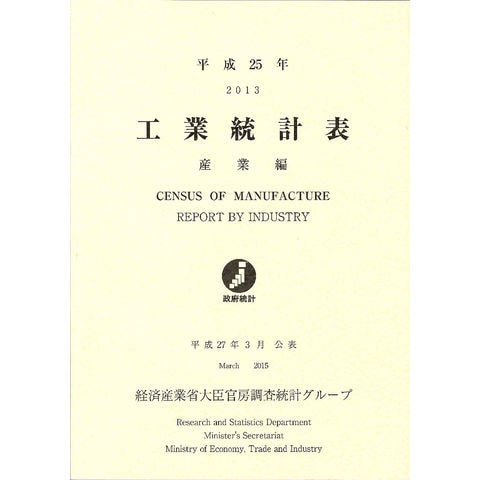 工業統計表 産業編 平成25年/経済産業省大臣官房調査統計グループ