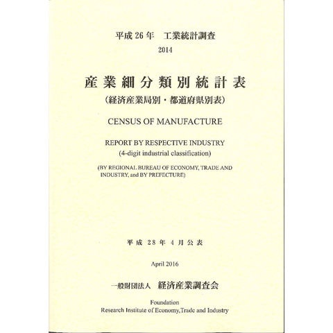 産業細分類別統計表 経済産業局別・都道府県別表 平成26年 工業統計調査/経済産業調査会