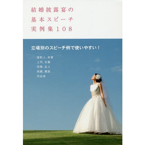 結婚披露宴でのさまざまな立場別でのスピーチを紹介。それぞれの例には、構成、注意するところ、話すときのマナーを書き添えています。