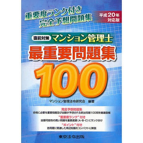 マンション管理士最重要問題集100 直前対策 平成20年対応版/マンション管理法令研究会