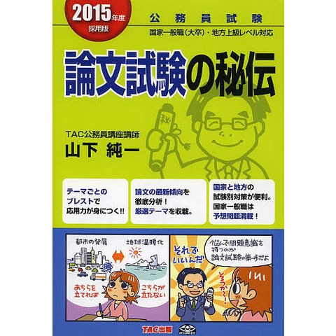 資格の学校TACカリスマ講師・山下純一の合格ノウハウを伝授国家公務員・地方上級試験など合格に大きなウエイトを占める論文試験。TACカリスマ講師・山下純一が論文を書く際の基本的なルールから、これまでの出題傾向、今後問われやすい頻出の25個のテーマについて会話形式でノウハウを伝授。解答例から考え方の組み立て方までイラストを多用し、スッキリ解説、これ1冊で高速学習。さらにさらに時間配分、答案の作成のパターンから原稿用紙の使い方まで過保護までに説明。