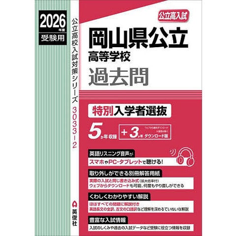 英俊社の赤本では最新5年分(2021年~2025年)の岡山県公立高校 特別入学者選抜の入試問題を収録しています。