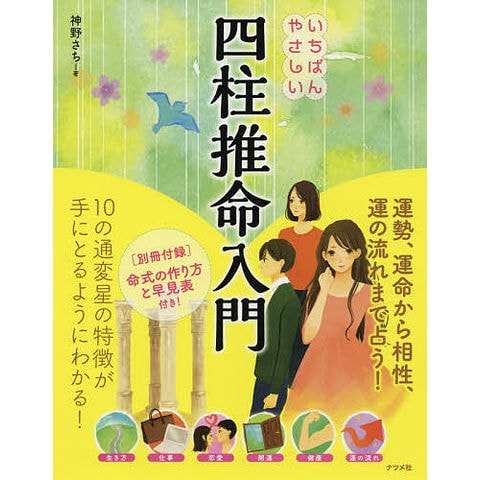 人を自然の一部としてとらえ、一人ひとりへのメッセージを読み解く四柱推命。本書では難解といわれる命式のつくり方と読み解き方をわかりやすく解説し、10の通変星の持つ意味をイラストを添え丁寧に紹介しました。別冊早見表付きですので、解説と見比べながら命式が作成できます。