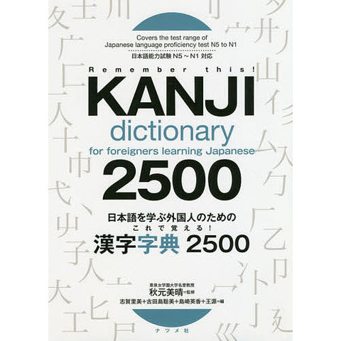 日本語の学習者のために、漢字2500字を選び解説しました。個々の漢字で解説する内容は、文字、音読み、訓読み、意味、書き順、部首、画数、熟語などです。熟語を数多く掲載することで、読んで理解できる親切な字典になっています。英語の対訳付き。