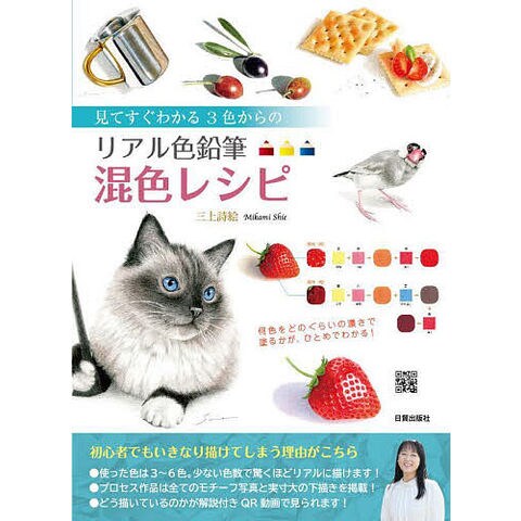 写真のようにリアルなのに、使う色はたった3~7色。何色をどのくらいの濃さで塗るかが一目でわかるので、初心者でも混色のコツが身に付きます。描き方のポイント解説が見られるQR動画つき。