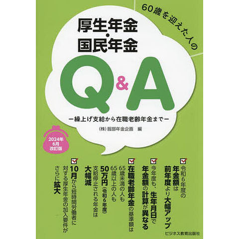2024年度改正内容の他、厚生年金や国民年金、繰上げ・繰下げ、在職老齢年金、障害・遺族年金、手続きまで基礎知識+Q&Aで詳説