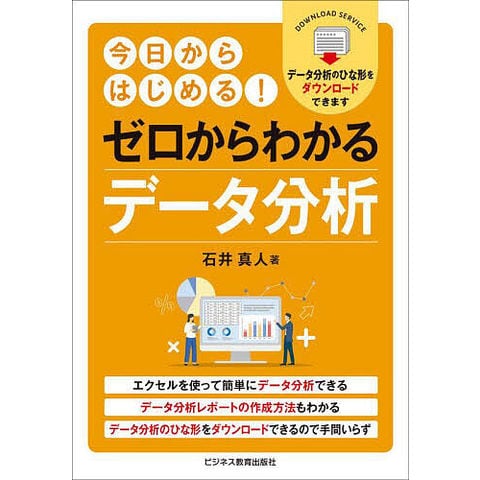初級レベルのエクセルの知識だけで簡単にデータ分析ができる。購入特典としてデータ分析できるエクセルデータも無料ダウンロード。