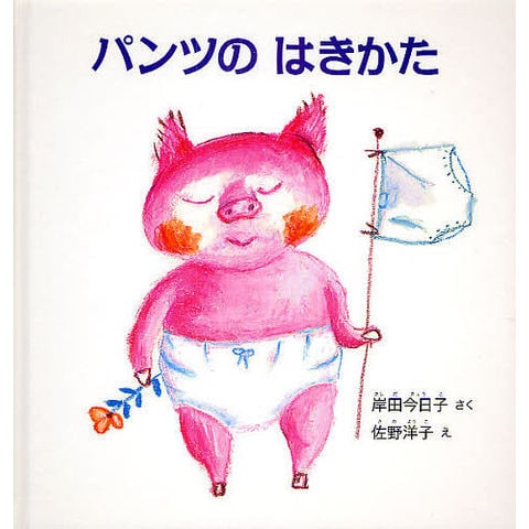 一人でトイレに行って、一人でパンツをはこうとするブタの女の子。「パンツはね、はじめに かたあし いれるでしょ」と、一つ一つの動作に、真剣に取り組むこぶたの表情に思わず笑みがこぼれます。そして、やっとはいたと思ったら、「あーあ せっかく はいたのに うらがえし」と、愉快などんでん返し。岸田今日子さんのリズミカルでユーモラスな言葉に、佐野洋子さんが生命力あふれる力強い絵をつけてくださいました。作者お二人の最後の作品になりました。