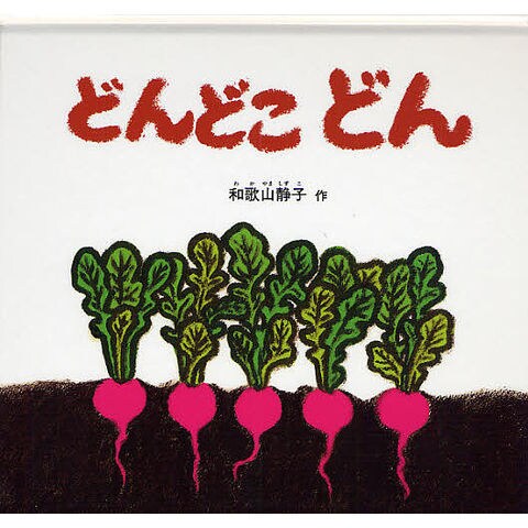 「つちのなかで どんどこ どんどこ」「あら にんじん」「つちの なかで どんどこ どんどこ」「ぽんぽん じゃがいも」……それから、さつまいも、さといも、ごぼう、そして最後に「どんと だいこん」。土の中でどんどん育っていく野菜が、力強く迫力満点の絵で描かれます。縦開きの絵本なので、ページを開いたときのダイナミックな展開が圧巻です。野菜の生命力があふれる絵本です。
