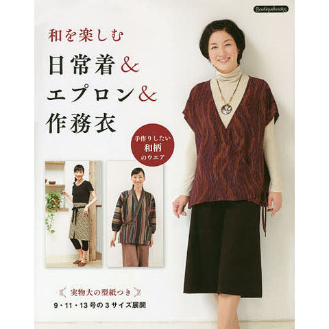 シンプルなデザインでも素敵な和柄を使うとおしゃれに見える、日常着&エプロン&作務衣をご紹介。全44点。9・11・13号サイズ展開、実物大の型紙つき。