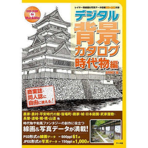 商業誌・同人誌に自由に使える! 農家・農村・平安時代の館・宿場町・商家・城・日本庭園・武家屋敷・長屋・道場・橋・堀・山道など、時代物や和風ファンタジーの創作に役立つ線画&写真データが満載!