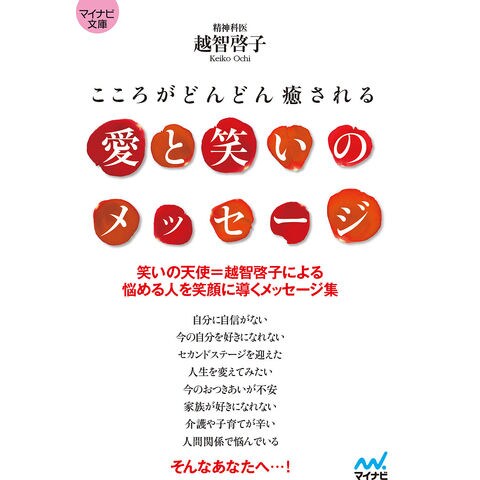 本書では、精神科医・越智啓子による愛と笑いのメッセージ集です。今悩んでいること、チャレンジしていること、あきらめていたこと、何とかしたいこと……。そういった日常のさまざまなことに向けて、少しでも元気になれるように、そして前を向いて歩けるように、優しく語りかけるようなメッセージが詰まった1冊です。