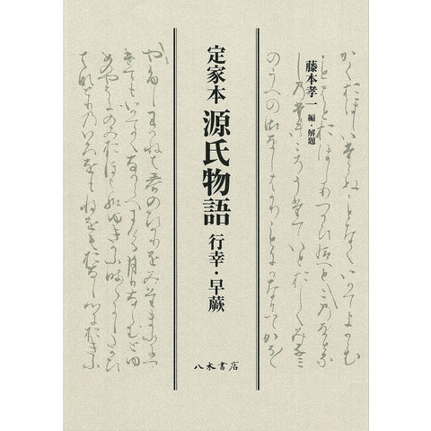 【定家本源氏物語とは】藤原定家筆本として伝わったが、現在では、定家が直接監督して書写された写本と考えられている。現存するのは、本書収録『行幸』『早蕨』の二帖と、前田育徳会尊経閣文庫所蔵『花散里』『柏木』の、僅かに四帖のみ。定家本系統(青表紙本)源氏物語諸本の原本にあたる最重要古写本である。