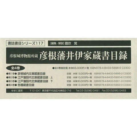 彦根城博物館所蔵彦根藩井伊家蔵書目録 4巻セット/膽吹覚