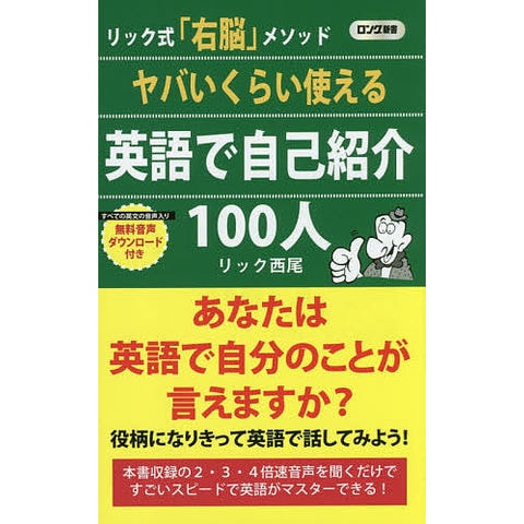 「人望のある野球監督」「甘えん坊のクラブママ」など、個性的な100人のキャラクターが楽しく英語で自己紹介します。「これだけ言えれば英会話力は急速アップ!」と自信を持って厳選した、フレーズを盛り込んだ、リック式「右脳」メソッド。