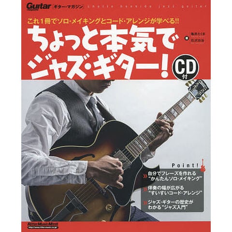 ちょっとジャズ・ギターでも弾いてみようかな、でも難しいのは嫌だな、理論を勉強するのもメンドクサイし......。そう思っているあなたへ贈るのが、本書『ギター・マガジン ちょっと本気でジャズ・ギター!【新装版】』です。本書では全18種のコード進行に沿ったバッキングやソロのジャジーなアプローチを3つずつ紹介しています。付属CDとカラー譜面、そしてわかりやすい解説で構成しているので、カッコ良いジャズ・フレーズを"本気っぽく"パッパッと弾けるようになるでしょう! ロックで育ったあなたも、ビッグバンドやジャズ研にいるあなたも、少しコードが弾ければ取り組める"ちょっと本気"なフレージングで一気にレベルアップしましょう!