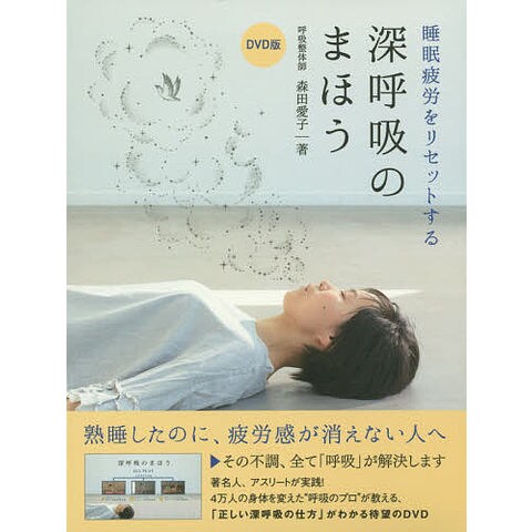 疲れているのに、眠れない…!?その不調、「呼吸」が全てを解決します!ぐっすり眠れる"熟睡力"と"回復力"宿す、「まほうの深呼吸体操」が待望のDVD化。 「リラックスしたいのに、身体が力んでしまう」 「考えごとが多くて寝付けない…」 そんな就寝前の不安、体のこわばりは、日中に受けたストレスの影響からくる「浅い呼吸」が原因。布団の中でもできる「おやすみ深呼吸体操」をしてから寝ると、睡眠中の呼吸が深くなり、血液・リンパ液・体液など全身の循環が活性化。自律神経など健康を司る機能も向上し、自然治癒力がアップするのです。