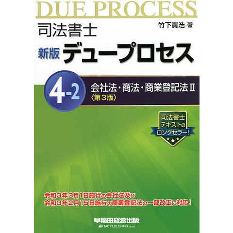 短期合格の元祖・竹下貴浩先生による、ロングセラーの基本書です。 2分冊のIIでは持分会社、組織再編などを扱っています。