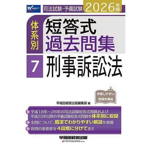 本書は、平成18年から平成26年までの司法試験、平成23年以降の司法試験予備試験の短答式試験のうち、「刑事訴訟法」を体系別・テーマ別に収録しています。