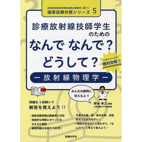 診療放射線技師国家試験出題基準に基づいた国試対策シリーズ第5弾。学生の質問にクマ先生がわかりやすく応えるQ&A。理解できているか確認するために、問題を解いてみてください。「なんで なんで? どうして?」こうなるのかという答えは解説の中に見つけてください。Q&Aを読む、問題を解く、解説を理解する、これを3回繰り返して、付属の赤シートで重要語句を暗記。最後は練習問題100問を3回解けたら、この教科は合格です。
