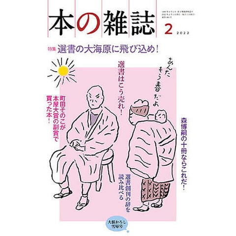 今月は「本屋大賞で買った本」で町田そのこが登場! 副賞の10万円分の図書カードで積極的に購入した67点78冊の気になる本を一挙公開すれば、読み物作家ガイドでは冬木糸一が自由な作家・森博嗣の多様な世界をどーんと紹介。黒い昼食会が「書店でデートしてほしい!」とお願いすれば、おじさん二人組は橋本治『人工島戦記』の担当者を直撃。古本屋台がさつま白波でまったりなら、読者アンケートは私の"肴"本で乾杯! 正月休みが終っても、おとそ気分は終らない。さあ、本の雑誌2月号で選書の海原をふわ~り酔いしれよう!