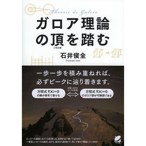 本書は、「一般の5次方程式が根号で解けないことをきちんと証明する」ことを頂上(ピーク)として、そこに向かって一歩一歩、しっかりと登っていく本です。前提としているのは、高校数学の知識です。それがしっかりと理解できていれば読めるようになっています。ピークへの過程に出てくる定理には、証明が全て書いてあります。一番易しいルートを選択しながら、途中から急に難しくなることなく、最初から最後まで、同じ丁寧さで解説していきます。